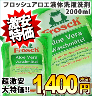 フロッシュ 洗濯用液体洗剤 アロエベラ2000ml同梱数の目安は他商品を含む同一サイズで5本です。価格: 1,400円レビュー評価: 5.0 レビュー数:1 商品についてこの商品は飲料・食品ではありません。商品の画像は予告なく変更となることがあります。表示の商品画像とお届けの商品と異なっていた場合でも、商品の仕様に同一であれば、交換等は行えませんので、あらかじめ御了承ください。商品は海外製品ですので、使用方法等に日本語の表記はございません。商品のキャップは緩みやすくなっております。そのため、商品のお届け時に多少液漏れが発生することがありますが、商品の仕様によるため交換は承っておりません。あらかじめご了承ください。商品の取扱い上の注意商品のキャップが非常に緩みやすいです。転倒や落下などで液漏れする場合があります。そのため大切な物の上や車の座席などには |