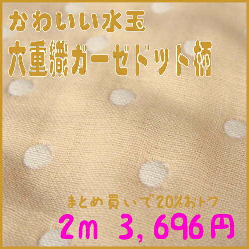 2m単位の購入で20%OFF!六重織ガーゼ生地ハギレドット柄(ベージュ)2m価格: 3,696円レビュー評価: 5.0 レビュー数:9 ■ご購入に際しての注意点■価格は2mあたりのものです2mご注文の場合は2m×「1」、4mご注文の場合は2m×「2」、となります。また、2m以上お買い求めの場合もカットは2m単位となります。2m以上の連続柄をご希望の方は注文時にお申し付けください。品質:綿100% 日本製色:ベージュサイズ:140cm幅×200cm重量:約950g数量:1枚 |